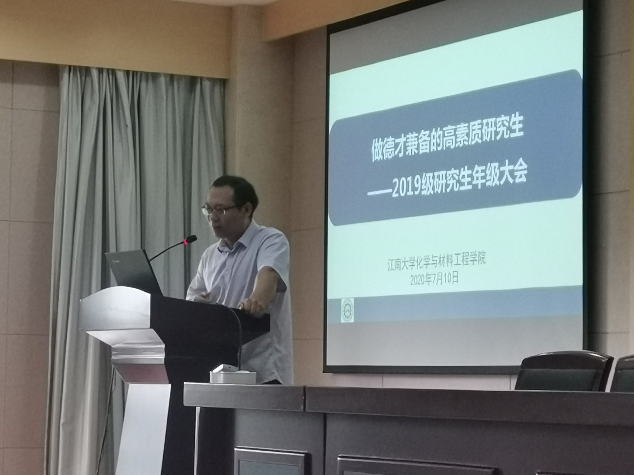 随后,分团委书记任增亮老师以“做德才兼备的高素质研究生”为题,结合疫情以来近期应急和突发各类问题,他提出当代研究生应“明大德”、“止于至善”,努力提高自己的思想境界,加强自身修养,体现研究生应有的高素质。同时,他就研究生管理制度与学业奖学金综合测评相关修订方案进行了解读,介绍了对疫情防控期间和暑假期间学生请假和离校的安排。
