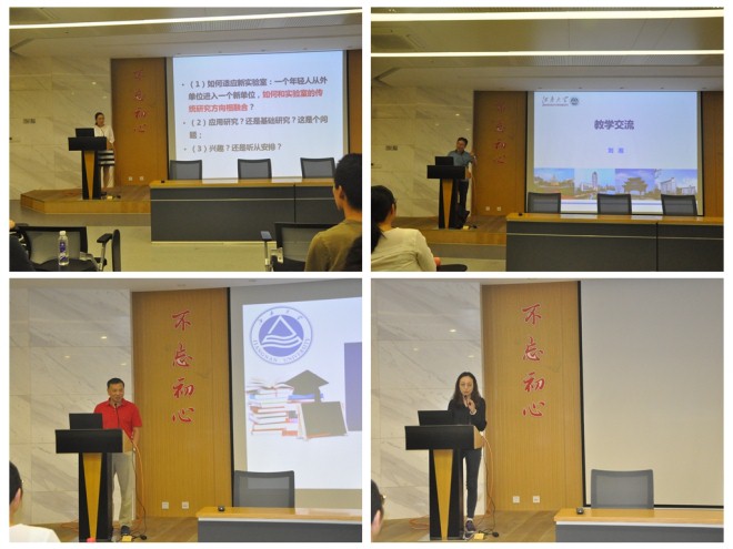 学院党委书记潘庆伟主持交流会。他指出,在喜迎祖国华诞和中秋佳节之际,学院按传统举行新教师交流联谊活动,是对青年教师的关心和期待,创造这个平台和机会,旨在让青年教师感受学院的温暖,以此共同创造自信的一本道