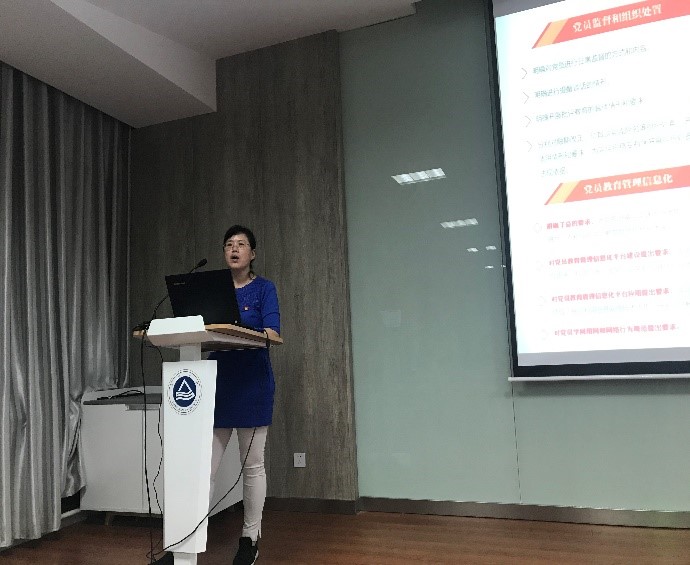 随后,田书记对学院2020级研究生新生党支部构成进行了介绍,并着重从党支部的职责定位和工作原则角度,要求党支部严格落实“三会一课”等各项制度,完成党支部组织生活基本任务。此外,她还详解了发展党员工作注意事项,梳理了党员发展流程,鼓励学生党员积极为身边有入党意愿的同学提供引导和帮助。