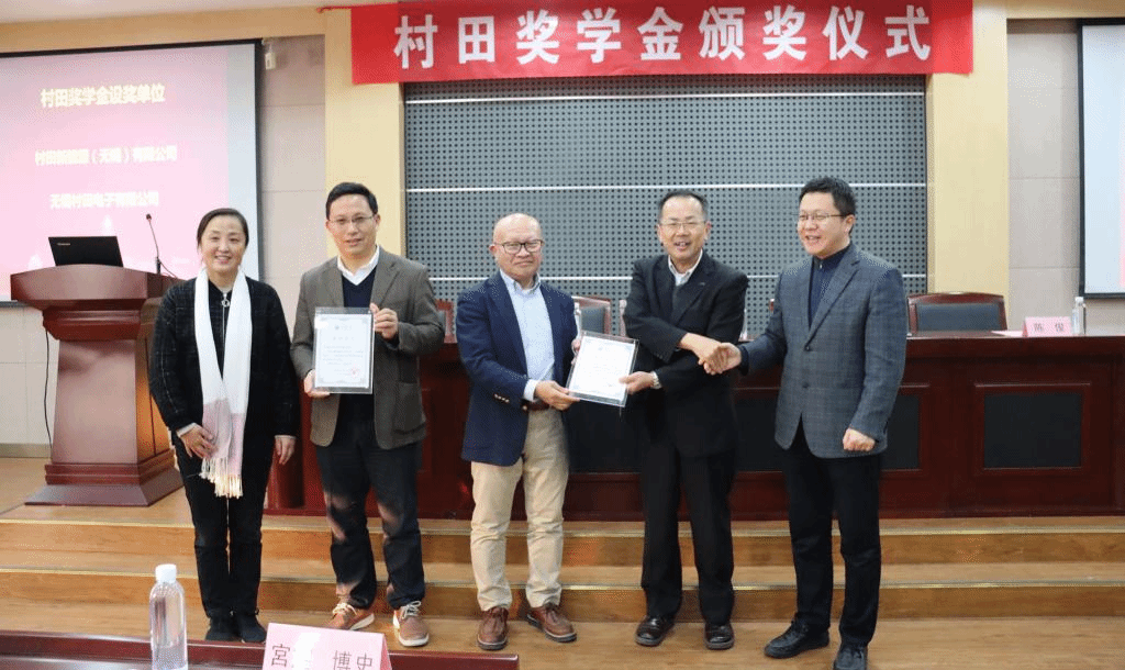 12月24日下午, “村田奖学金”颁奖典礼在化工楼B329举行。出席本次活动的嘉宾有:村田新能源(无锡)有限公司和无锡村田电子有限公司董事长野田慎治,村田新能源(无锡)有限公司副总经理辻篤,无锡村田电子有限公司管理统括部统括部长陈俊等无锡村田公司12位企业代表;机械工程学院党委书记高雪梅,院党委副书记方俊;一本道