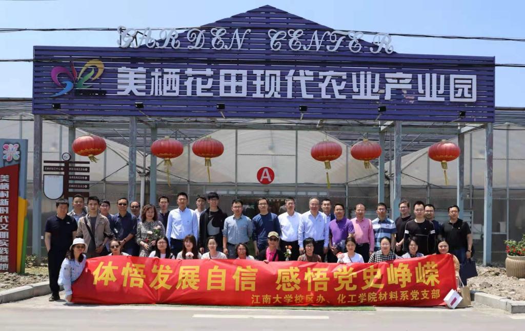 5月22日上午,在杨延的带领下,两个支部在宜兴徐舍镇美栖村进行党史学习教育党日活动。美栖村位于宜兴市徐舍镇北部,老104国道、官张公路穿村而过,交通便利,环境优美。美栖村是典型的江南圩区,美栖河穿村而过,碧水绿树,亭台楼阁,鸟语花香。美栖村党委积极响应党的号召,带领村民开拓创新,通过吸引专家、投资项目等多项建设,从一朵花到一片片花海,从一个品种到多个品种,美栖村不但升格为宜兴乡村的“颜值担当”,更做大了花田经济,以玫瑰花种植带动了产品深加工、观光休闲三产融合,也让更多村民逐渐从参与者变为受益者。徜徉在玫瑰花海中,听着美栖村村支书宗华东的介绍,大家深刻感受到了在党的领导下,农业、农村、农民生活所发生的翻天覆地的变化,进一步加深了大家对乡村振兴政策的认识和理解,也加深了对习近平新时代中国特色社会主义思想的领悟和认同。