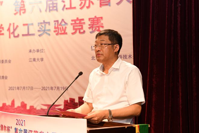 发展情况。他指出,此次竞赛是推动和提升我校大学生化学化工实验操作能力的一次良好契机,各兄弟高校要加强交流和合作,着力推进实践教学改革和实践教学资源建设,共同推动江苏高校化学化工实验教学改革,培养化学化工类顶尖人才。随后,沈健代表江苏省化学化工学会和竞赛组委会致辞,对竞赛提出期望和要求。
