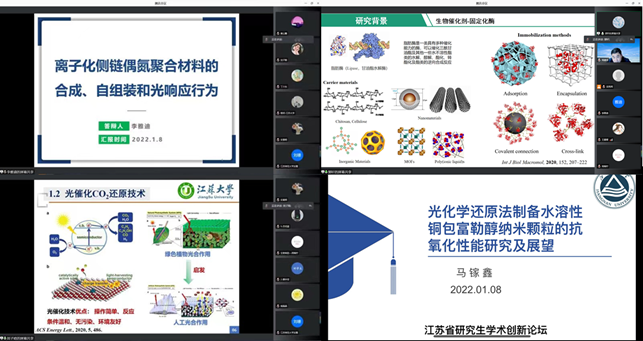 蒋建中教授分别做了题为:具有钙钛矿结构的分子铁电材料、Carbon Dots Promise New Photoelectrocatalysts、表面活性剂与纳米颗粒在流体界面自组装的高水平学术报告,拓宽了参会研究生的学术思维。当天下午,来自各校的研究生代表根据自身研究内容,前往各个分论坛做了关于化学化工新技术、高分子材料、功能材料等相关领域的线上学术报告,报告内容详实,具有较高的前沿性,充分体现了各学子在化工新材料领域的创新思维。