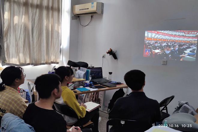 研究生党支部在实验室观看党的二十大开幕会