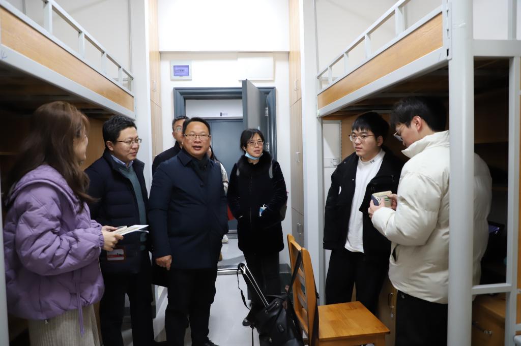 上午9时,学院党委书记潘庆伟,院长东为富,党委副书记、副院长田卫平以及东氿校区校区办主任杨延,副主任赵莹、倪寒冰等领导老师到出发点看望慰问搬迁同学。领导老师在走访搬迁同学的宿舍过程中表达了对同学们的关心和问候,并希望同学们互帮互助,积极适应新的环境。随后学院领导实地走访了不同楼层的实验室,详细了解搬迁后科研实验室的运行情况和实验仪器的安装进度,并就实验工作等具体问题与相关老师进行了密切交流。最后学院领导在合影留念时勉励留在东氿校区的同学,实验室即将建成,要充分发挥东氿校区的平台优势,静下心来做学问,以优异的成果助力学院建设,也希望即将搬迁过去的同学们将扎实的学风带到蠡湖校区,静心学习做科研。