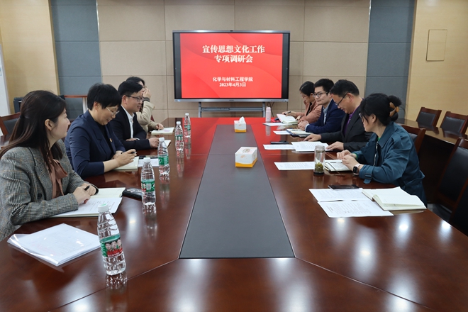 潘庆伟围绕学院贯彻落实党的二十大精神的重点举措、围绕“三全育人”开展的特色工作、学院精神文明与校园文化建设情况、学院新闻宣传工作特色等方面进行重点汇报。田卫平就学院近期重点举措进行补充汇报,并就打通校-院宣传通路、提高师生意识形态识辩能力提出建议。