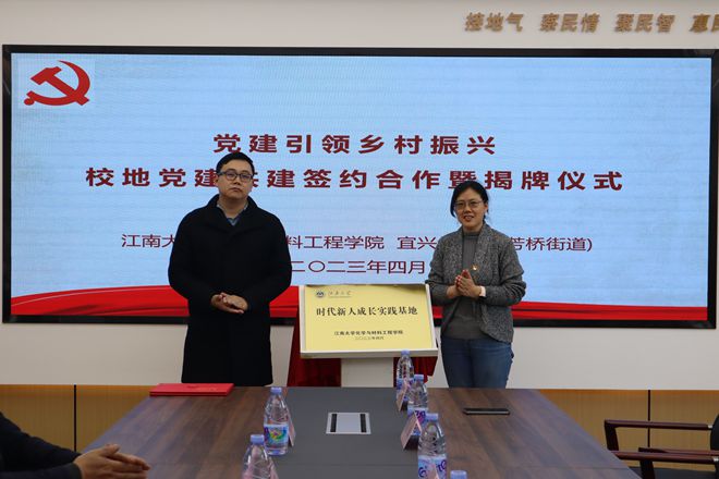 为进一步深化校地合作助力乡村振兴,开拓“田野思政”育人平台,提升“党建+思政+实践”育人实效,在学习贯彻习近平新时代中国特色社会主义思想主题教育之际,4月8日下午,学院党委与金兰村党总支党建共建签约暨实践基地揭牌仪式在金兰村举办,宜兴市芳桥街道党工委宣传委员李岳卿,宜兴市金兰村党总支书记、村委会主任蒋仲良,宜兴市芳桥街道党工委副书记、省派金兰村第一书记储东巍,学院党委副书记、副院长田卫平,副教授、宜兴市科技镇长团团员刘敬成,辅导员高静、郝林青、杭腾、李晓洁及2022级研究生党支部委员参加活动。会议由储东巍主持。