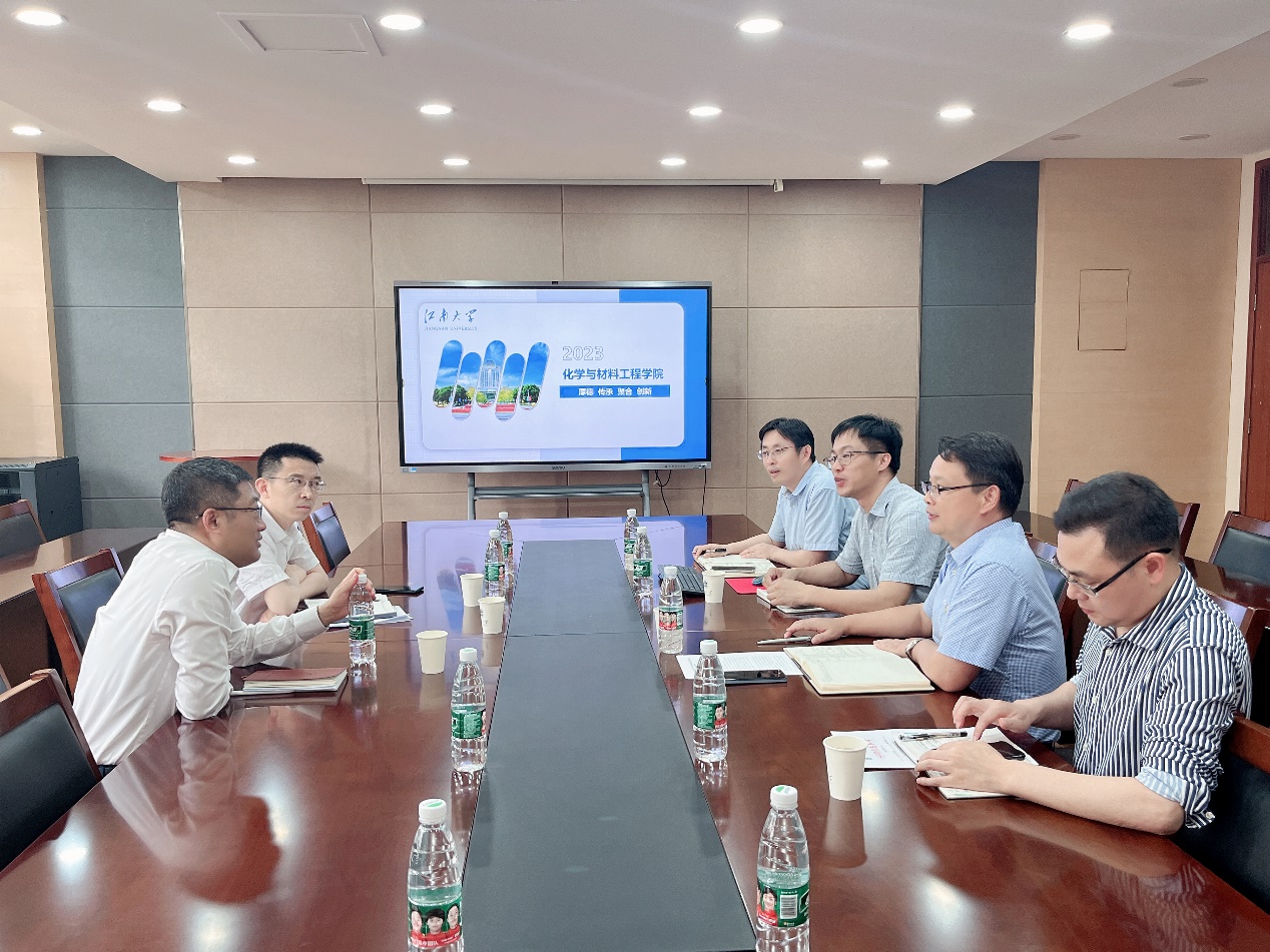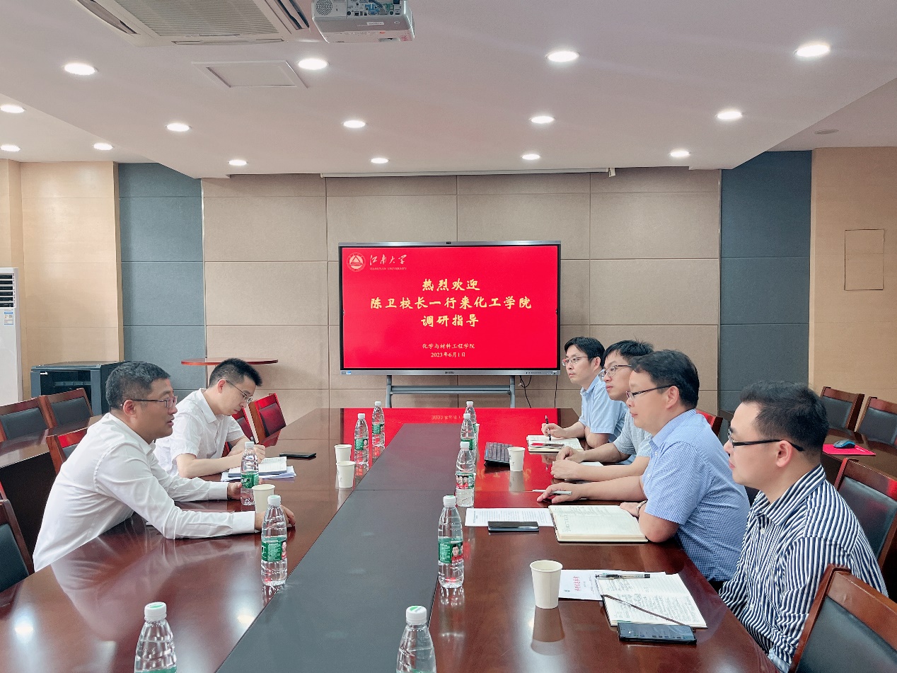 走深走实情况。院长刘仁汇报了学院强化面向产业需求的基础学科布局,推进“化工+材料”“基础+特色”的发展战略;优化科研评价体系,重塑科研追求,培育标志性成果的科学研究思路;多层次精准引培,构建可持续、高质量发展人才梯队建设举措;强化平台有组织建设,保评估-再发展-谋升级等方面的思考与谋划。