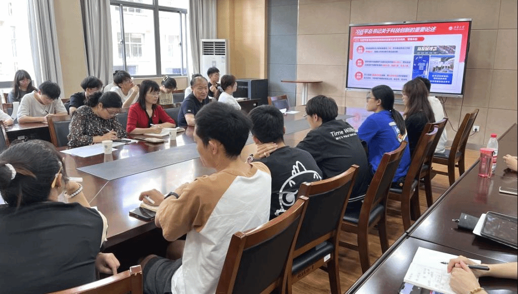 顾正彪以科研工作作为切入点,通过中美贸易战中暴露出的科技创新短板,论证了自主科研创新和成果转化的重要性,又以“担科技强国重任 做自立自强青年”为主题展开讲述了习近平总书记关于科技创新的重要论述,中国科技发展现状及重点任务以及科技自立自强和科技强国建设的奋斗目标。顾正彪结合自身科研经历讲述了多年来国家对科研工作的重视程度变化,引导学生党员正视我国科研创新水平差距,勉励学生党员胸怀科技报国的远大抱负,以强国为己任,瞄准国家需求,加快技术攻关,把科技成果运用在实现社会主义现代化的事业中。
