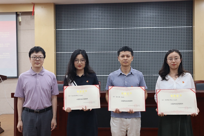 优秀共产党员、优秀党务工作者、示范性基层党组织》的决定。大会对做出突出贡献的党务和思想政治工作先进集体与优秀个人进行表彰。授予罗静、刘冰等13位同志“优秀共产党员”;授予施冬健、周小兰等5位同志“优秀党务工作者”;授予应化系党支部、材料系学生党支部、化工系学生党支部“示范性基层党组织”荣誉称号。在场领导嘉宾为获奖党员和党支部颁发了荣誉证书。
