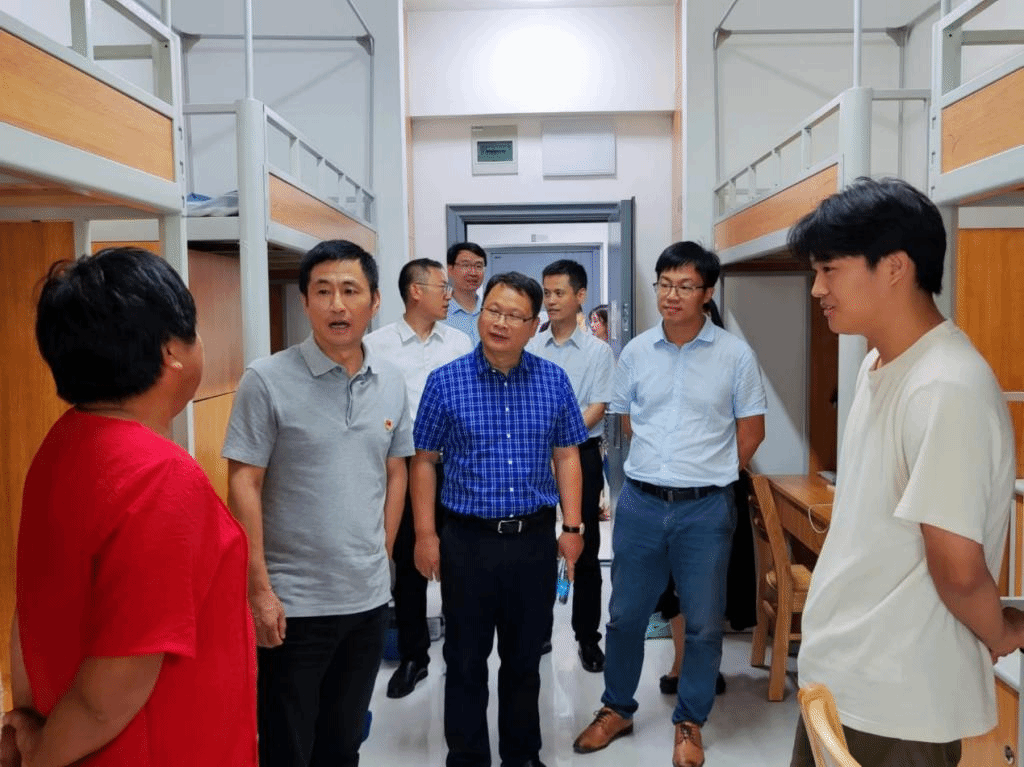 的领导和老师们更是以实际行动表达了对新生们的热切关怀。学院党委书记潘庆伟,院长刘仁,党委副书记兼副院长董霞来到学生宿舍看望学院2023级研究生新生。在宿舍走访过程中,学院领导向新生表达了热切的关怀,深入了解新生对于入住新校区的感受,关心他们的生活状况。随后,领导老师们走访了东氿校区实验室,了解各个实验团队实验室建设情况,并鼓励全体新生立足东氿校区,尽快适应研究生生活,充分利用好东氿校区的一流软、硬件设施,静下心来做学问,以优异的科研成果助力东氿校区的建设。这既是对新生的期望,也是对他们的鼓励和支持。